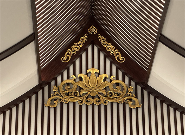 吊顶采用步步锦,这一传统中式元素为空间增添了浓郁的文化气息。步步锦寓意步步高升,象征着事业、生活等各方面不断进步,追求更高的品质和成就。