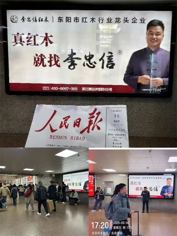 李忠信红木展开全国性品牌宣传行动,在东阳市红木产业核心区、北京西站交通枢纽及西安高端住宅区精准布局线下广告。