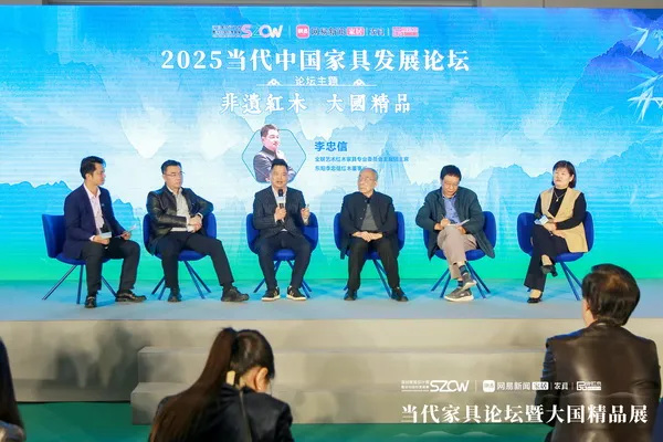 在“2025当代中国家具发展论坛”第二轮“非遗红木 大国精品”主题讨论中,李忠信红木董事长李忠信分享了企业在管理、品质、产品、诚信模式等方面的创新经验。