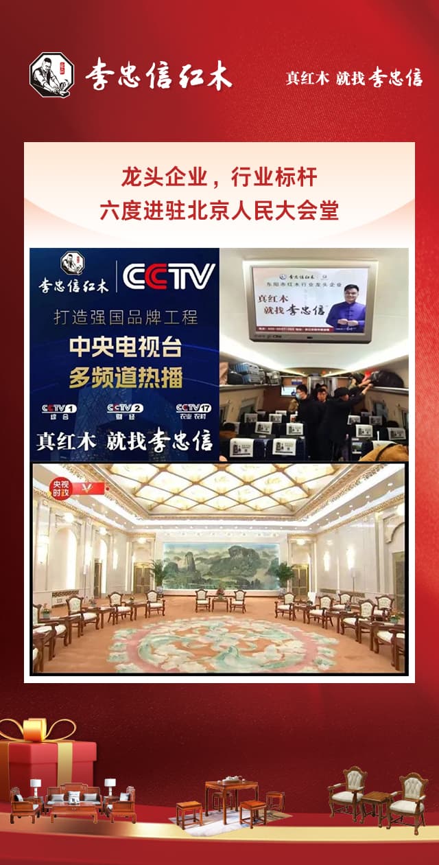 李忠信红木,这个名字在红木行业早已如雷贯耳。作为行业的龙头企业,李忠信红木凭借卓越的品质和精湛的工艺,六度进驻北京人民大会堂,成为行业标杆。这一殊荣不仅是对李忠信红木实力的高度认可,更是对其品牌价值的有力背书。选择李忠信红木,就是选择品质与信誉的双重保障。