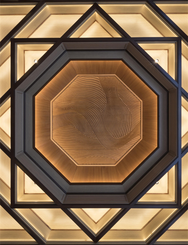 步入忠信·礼遇厅,迎面而来的不仅是视觉震撼,更是一场关于“礼”的沉浸式教育。空间设计以“天圆地方”为哲学框架,展陈突破传统器物陈列模式,通过场景复原呈现“忠信”在当代社会的具象化表达:复刻的明清书房中,文人以红木镇纸压住书信,墨香与木香交织;现代客厅场景里,红木沙发承载着三代人的天伦之乐。这种时空对话,让“忠信”从抽象概念转化为可感知的生活美学。