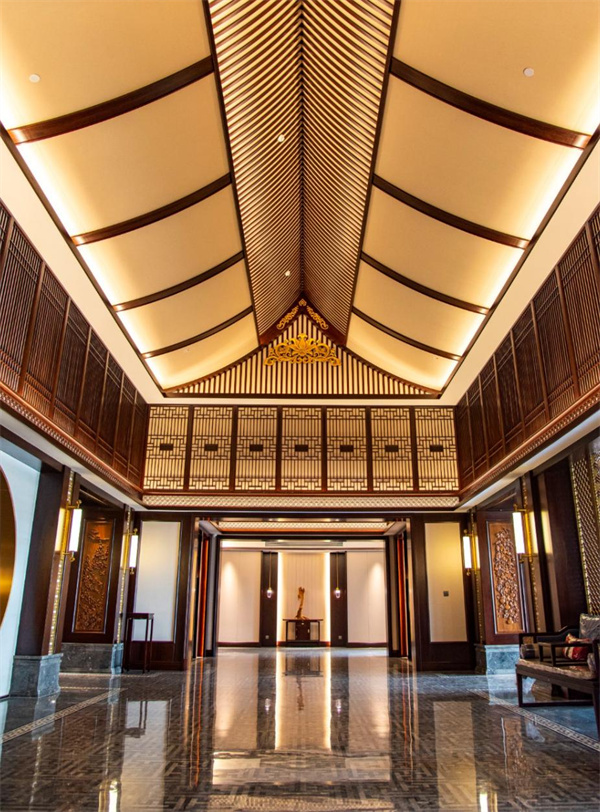 在李忠信艺术馆的宋式门楼下驻足,飞檐翘角如鸟斯革,白墙黛瓦似水墨洇染。这座以现代中式歇山顶风格重构的建筑,将《营造法式》的精微比例与极简美学相融合——门楼榫卯结构严丝合缝却未用一钉,看似轻盈的悬山造型实则暗含力学智慧。设计师将红木整装工艺融入空间叙事:用木雕技法再现传统匠作场景;中庭天窗采用榫卯结构的现代演绎,阳光透过镂空花格在地面投射出流动的光影诗篇。